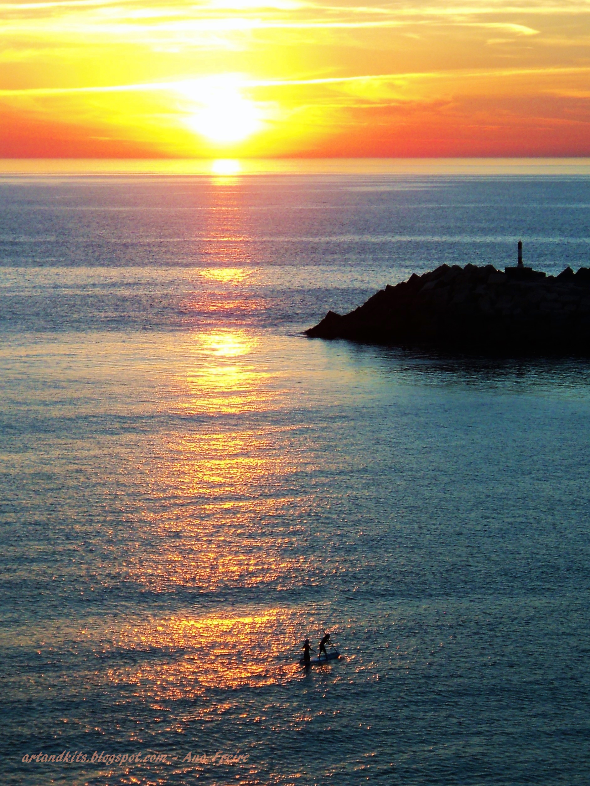Esta foto é muito linda com o sol refletido no mar. Como se fosse uma bola saltarica. Adorei a cor. A paz que transmite.